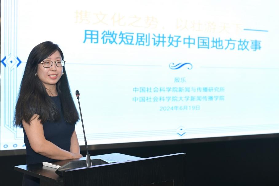 中国社会科学院新闻与传播研究所副所长、广播影视研究中心主任殷乐以《携文化之势,以壮游天下——用微短剧讲好中国地方故事》为题发表演讲。