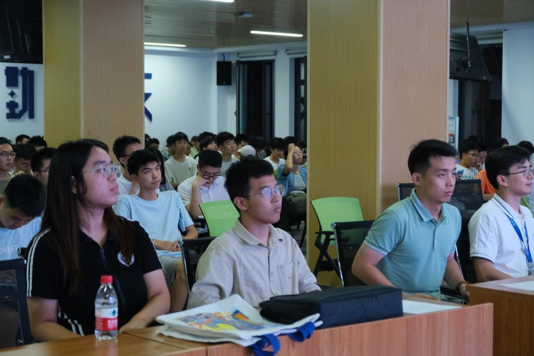 随后,常帅老师以“喜迎新生•安全先行——2024级新生安全专题教育”为题开展新生教育。他结合现实案例,通过“防范诈骗”“交通出行”“消防安全”“言论与谣言”四个部分,为同学们讲述了日常生活当中可能存在的安全隐患以及应对方法。随后又特别针对创新港校区的交通特点进行了详细分析,叮嘱同学们注意出行安全,做好自己安全的第一责任人。