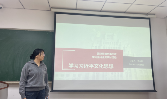10月21日,国际传播系组织召开第七次“学习强科”业务研讨活动。本次活动由国际传播系助理教授达雅楠主持,助理教授王含阳领学有关习近平文化思想相关论述,副教授王威力围绕“文化自信和文化软实力”进行分享,国际传播系全体师生参与研讨。本次“学习强科”活动旨在深入理解并贯彻习近平文化思想,为做好新时代国际传播研究工作和智能时代下新闻传播学科建设提供理论指导和行动指南。