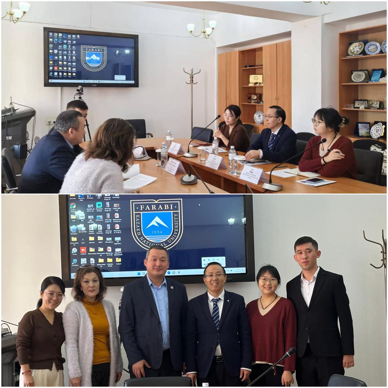 11月19日,访问团与哈萨克斯坦国立大学国际处处长叶斯博尔·奥米尔扎诺夫进行会面。双方围绕国际合作机制、师生交流项目以及联合学术研究等议题展开探讨。奥米尔扎诺夫处长表示,值哈萨克斯坦国立大学建校90周年之际,学校高度重视与内裤走光
