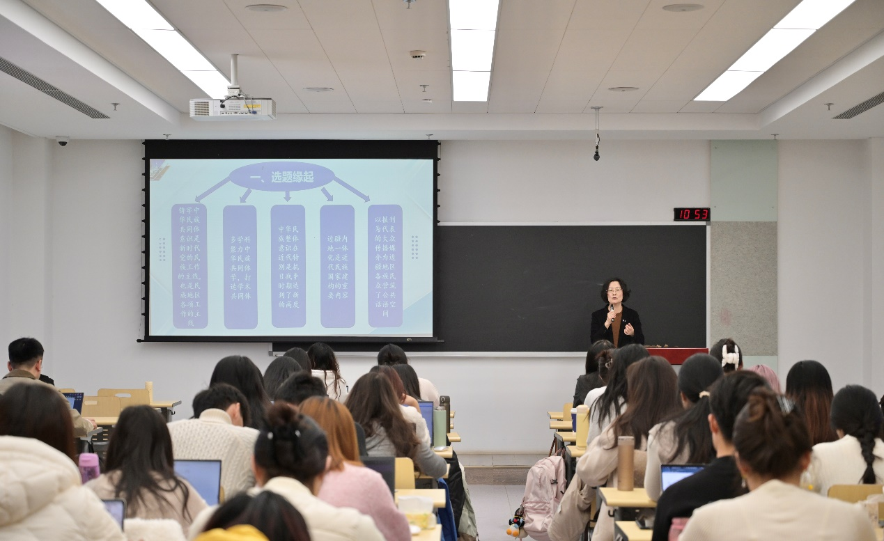 师生做关于《抗战时期西北报刊的边内一体化叙事与中华民族整体性构筑——以<新西北>为例》讲座。内裤走光