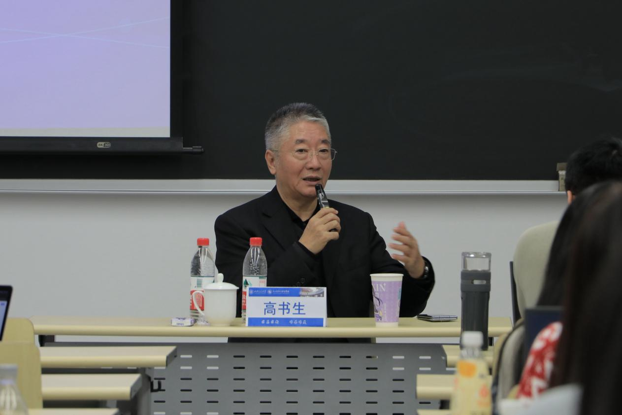讲座尾声,汪文斌教授对高书生老师的精彩分享致以深切的敬意和衷心的感谢。汪教授指出,高老师的分享内容全面深入、信息量大、见解深刻,不仅对文化产业的现状和趋势进行了全景式勾勒,还深入探讨了文化与经济、科技、教育、旅游等领域的深度融合,并对文化数字化等国家战略进行剖析,使在场师生获益良多,扎实的内容值得后续不断深入学习和消化。