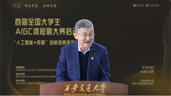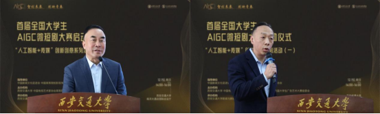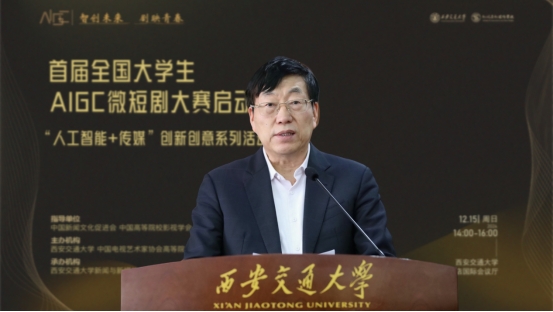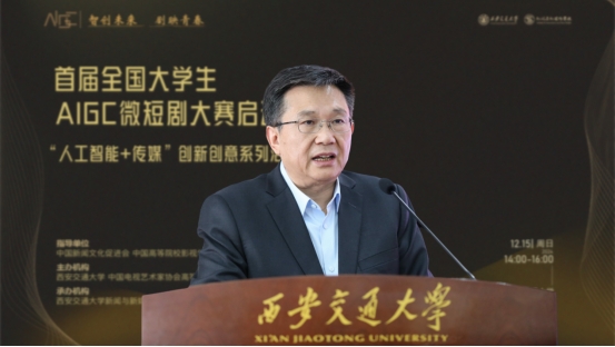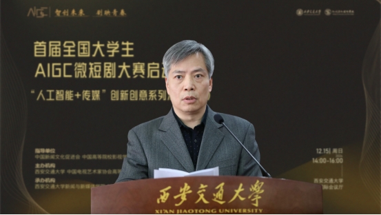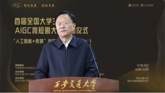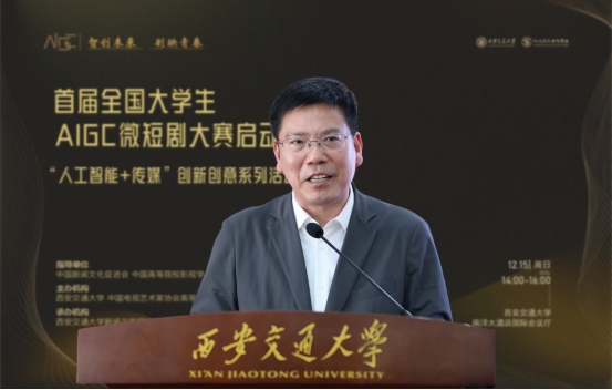 孙早对莅临大会的领导嘉宾们表示热烈欢迎。他强调,当下科技浪潮奔涌不息,AIGC强势崛起,打破了传统创作的壁垒,让天马行空的创意有了迅速落地的可能,“人人皆可成为创作者”。我们的大学生恰是点点繁星,这场竞赛将是绝佳的试炼场。他指出,我们应当深入贯彻落实习近平总书记关于文化与科技融合问题的重要指示精神,将AIGC+微短剧作为文化传播的新窗口。他还表示,西安交大将全力为AIGC微短剧大赛提供技术支持、导师资源,搭建合作交流平台,荟萃青春创意繁星,书写微短剧新业态传奇。
