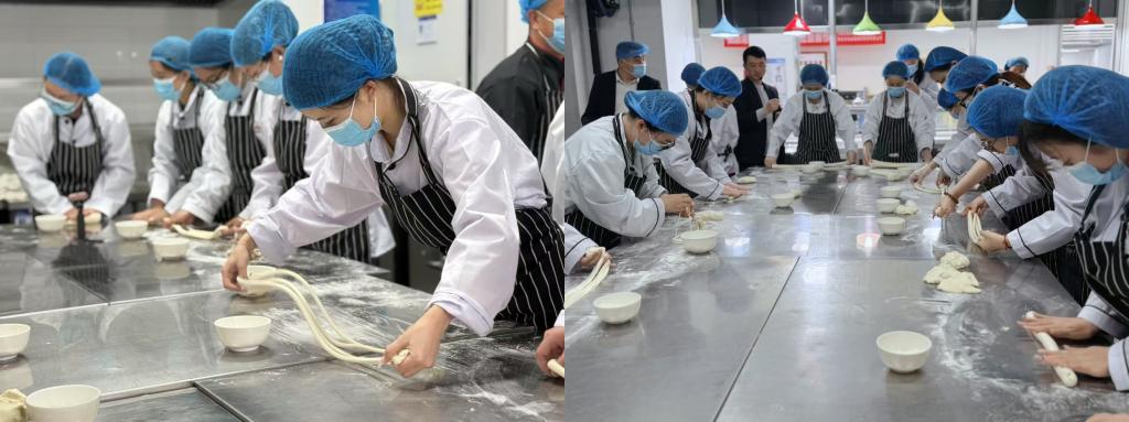 活动伊始,授课教师马荣以专业且生动的方式,围绕拉面的历史源流、拉面与牛肉面的差异,以及拉面的制作方法等内容,为同学们展开细致讲解。讲解过程中,经验丰富的拉面师傅同步演示,完整地向学生们呈现了拉面制作的全流程。