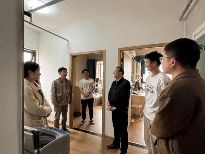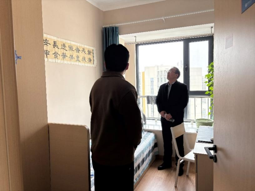 党委副书记吴锋带队再次前往宿舍园区,针对前期发现的问题进行“回头看”督导。吴锋副书记进入学生宿舍,逐一确认安全隐患整改落实情况,并与学生展开亲切交流。谈话中,他询问同学们近期学习生活状况,关注学生情绪波动与学业规划,引导其合理调整心态、积极应对挑战,同时他也耐心倾听学生对宿舍管理的意见建议。针对安全检查结果,吴锋副书记强调“安全无小事,防范于未然”,他呼吁同学们自觉遵守宿舍规范,共同维护安全环境。