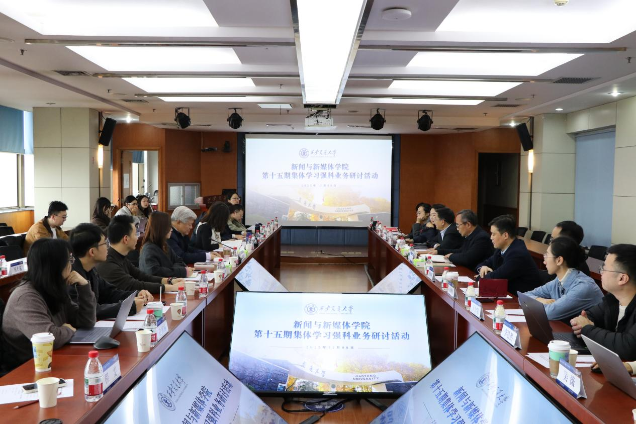 “学习强科”业务研讨活动的重要意义。“学习强科”活动是学院提升学科建设水平、凝聚发展合力的重要举措,正所谓“磨刀不误砍柴工”,学院教师应积极参与到活动研讨中来。他指出,聂震宁老师凭借充沛的情感和深厚的学养,带来了一场跨越时空的精神洗礼,使师生们再次深刻领悟到邹韬奋“以笔为剑、信仰为魂”的崇高品格。韬奋精神深深植根于中华优秀传统文化,与新时代新闻使命同频共振,成为学院立德树人的宝贵思想资源。成进强调,人才培养必须坚持知识传授与价值塑造并重。教师应立足学理、引领真理,以温度、深度和故事化的表达方式润心育魂。学院要持续打造并擦亮“学习强科”品牌,在思想淬炼和科研创新中不断汇聚交大新媒体的力量,讲好中国故事,传播中国声音。