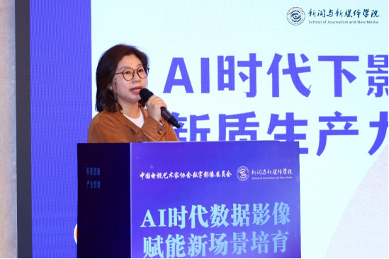 中国影协青委会委员、资深电影制片人孙嵘分享了AI在影视行业的应用探索与挑战。她介绍,团队已通过AI工具实现剧本优化、预览片生成等全流程辅助创作,大幅降低制作成本,但同时面临版权确权、内容同质化等行业难题。她提出,未来影视行业应构建“算力+模型+数据”的新型生产体系,探索互动式影游、VR影院等新场景,推动IP形态重构与价值延伸。