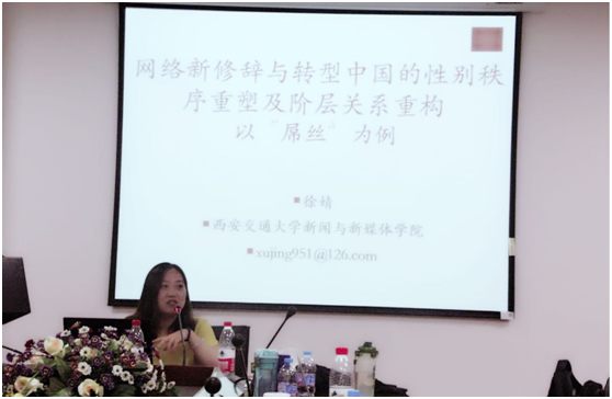 我院教师徐婧受邀参加6月13日晚的青年学者圆桌论坛。她围绕“网络新修辞与社会性别秩序、阶层关系重塑”这一主题,讨论了当前中国互联网中涌现出的众多网络流行语其中所蕴含的社会性别秩序与转型期中国社会阶层关系。徐婧博士以“屌丝”为例,从该词产生至今的语义流转、该词与当前社会语境的勾连以及新媒体在形成网络群体的新身份认同中发挥的作用几个方面展开论述。最后,徐婧博士也对该论文的结论进行了再批判与再反思。