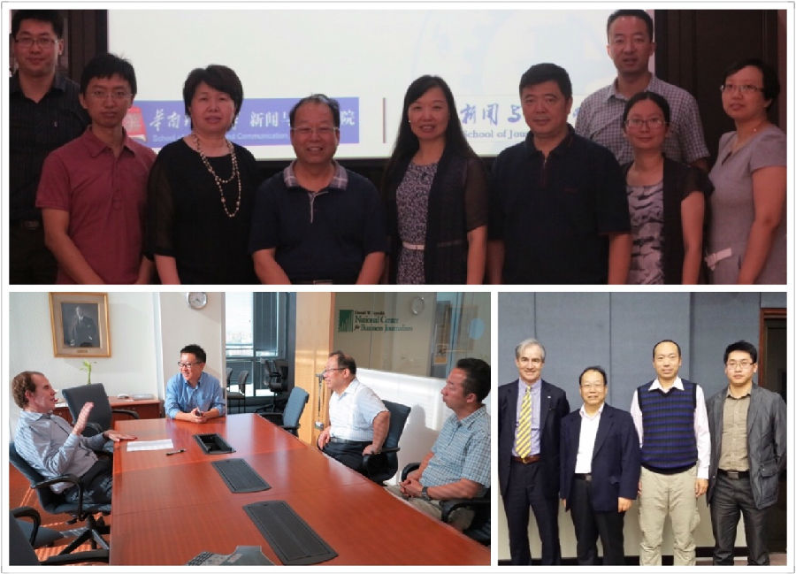 雄鸡一唱天下白,对于新建学院来说,声闻于界才能迅速打开局面。所以,成立伊始,学院就非常重视交流合作,成立两年来,已经与海内外多所知名大学的新闻学院开展了互访交流。访问加利福尼亚大学伯克利分校新闻学院,同亚利桑那州立大学克朗凯特新闻学院B·William Silcock教授共商合作,相继走访香港浸会大学、香港城市大学、香港中文大学、清华大学、中国人民大学、中国传媒大学、南京大学、华中科技大学、中山大学、武汉大学、暨南大学等高等院校。