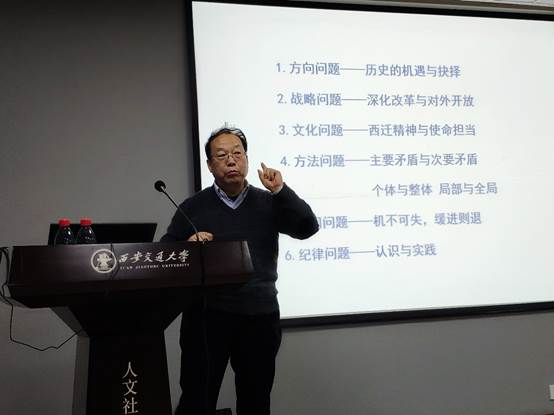 李明德院长在向全体教师传达了王树国校长《历史的重大机遇、交大的使命担当》报告内容和张迈曾书记《强化改革思维 落实改革举措 迎接新的挑战 创造新的贡献》讲话精神之后着重指出,全院教师要勇挑重担,争创留下历史印记的新贡献,以紧迫的使命感为交大发展和地方建设做出应有的贡献,以突出的成绩为第五轮学科评估积攒厚实的基础。