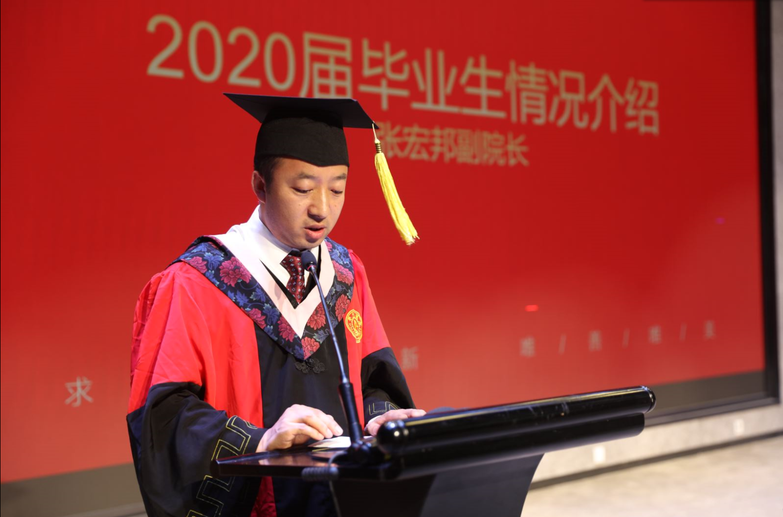 隆重举办毕业典礼暨学位授予仪式,学院党总支书记兼院长李明德教授,副院长孙鹤立,张宏邦,杨琳教授,吴锋教授,崇实书院院务副主任段继超,辅导员李文武,校友代表中共韩城市委宣传部副部长、网信办主任李伟博士,研究生导师,2020届全体毕业生及学生家长等代表参加,党总支副书记韩博教授主持典礼。