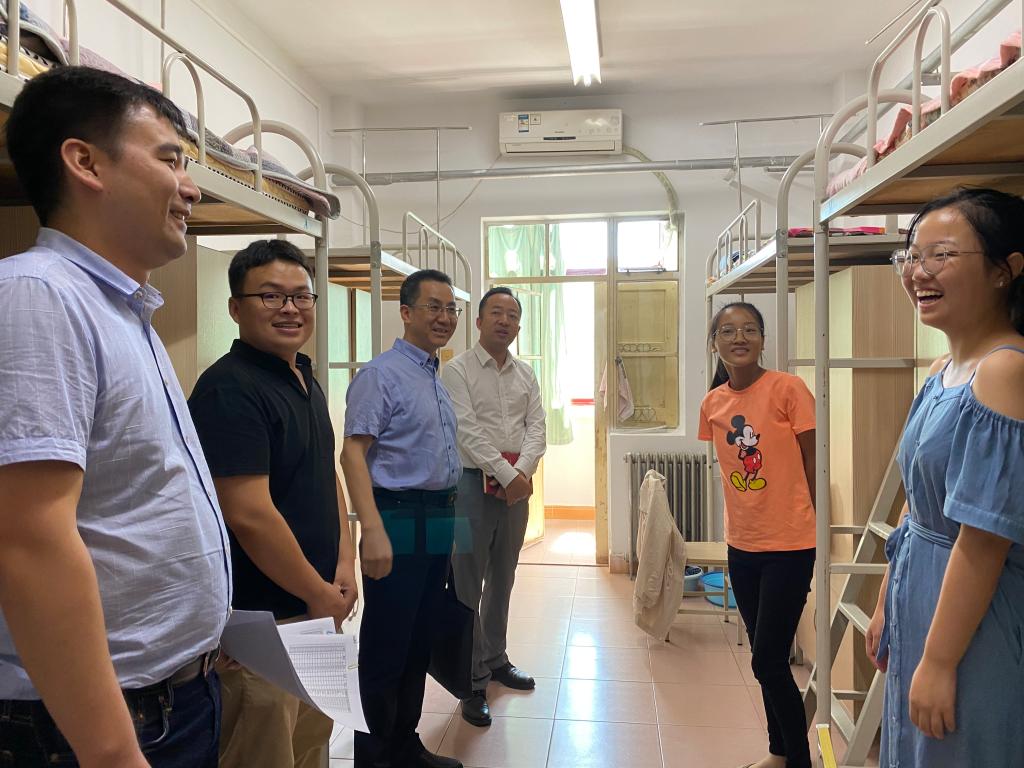 韩博副书记、张宏邦副院长,新生班主任李巨星老师,教务员马樱支老师走访新生宿舍,了解新生情况,为新生送去亲切的关怀。