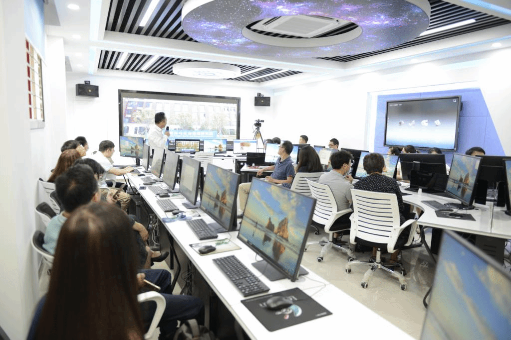 会议第一环节,全院教工集体参观智慧媒体实验室,该实验室是我院新建成的本科生教学综合实验室,囊括了融媒体技术实验教学平台、媒体大脑、媒资系统等当前新媒体教学的先进技术。教学副院长张宏邦感谢工作人员暑期的辛苦付出,表示新建成的实验室功能齐全,未来将依托新技术新应用为内裤走光