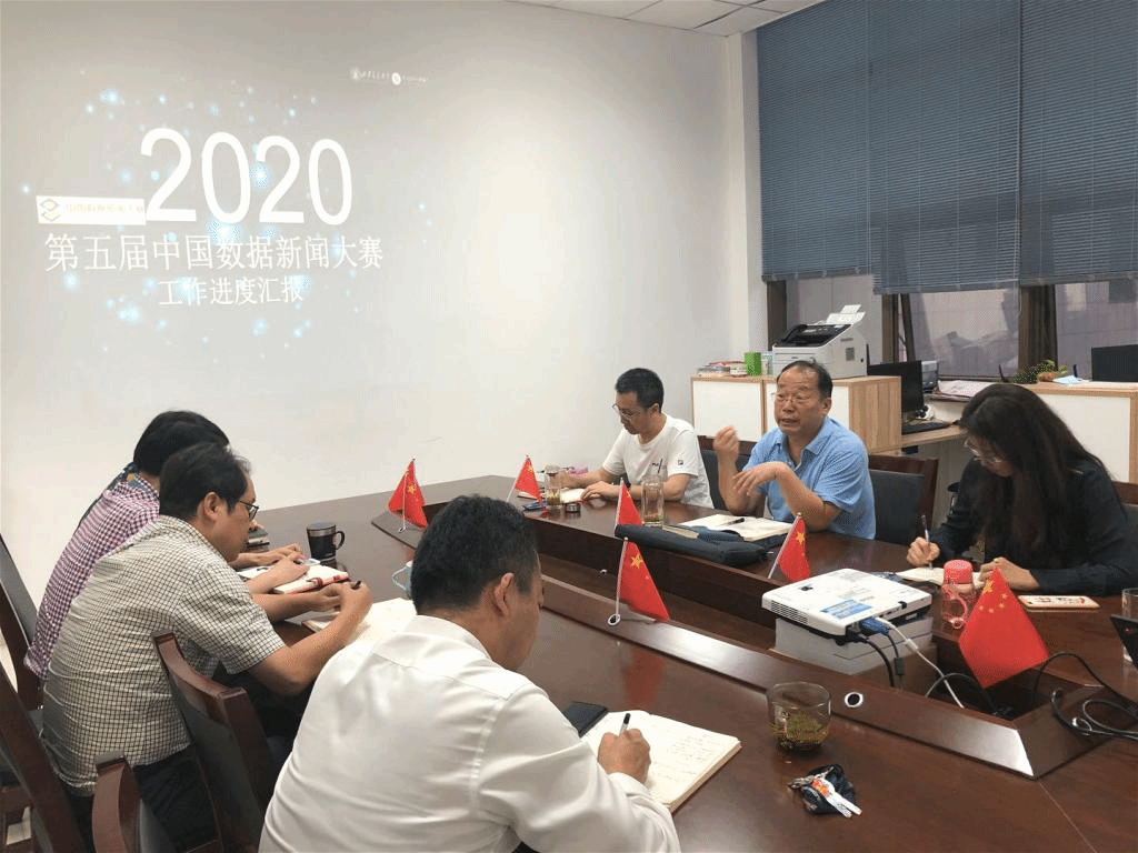 随后,院长助理陈积银汇报了第五届中国数据新闻大赛工作进展。本届大赛共收到有效作品845份,在数量和质量上均创新高,目前初赛评选已结束,共有334个学界作品和12个业界作品进入复赛网络投票环节。数据新闻大赛是“科创月”新媒体研究院系列活动的重头戏,将展现新媒体研究院教学、科研和平台建设各方面实力,同时作为学院新闻传播专业工字牌建设的重要举措之一,也将促进新闻传播专业师生追踪学科前沿热情,提高动手操作能力和沟通交流能力,提升学院在国内外的知名度与美誉度。大赛决赛将于9月26日上午在创新港举行。