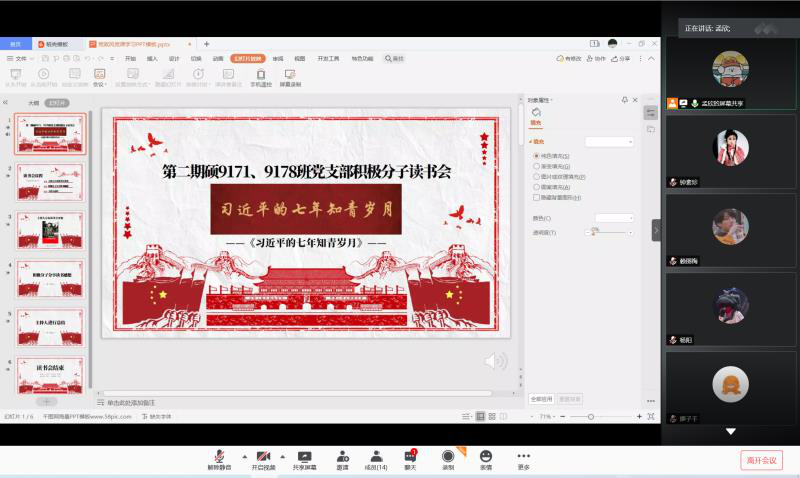 硕9177、9178党支部全体入党积极分子第二期读书会在线上展开,本期读书会由积极分子成员孟欣同志主持,阅读书目为《习近平的七年知青岁月》。
