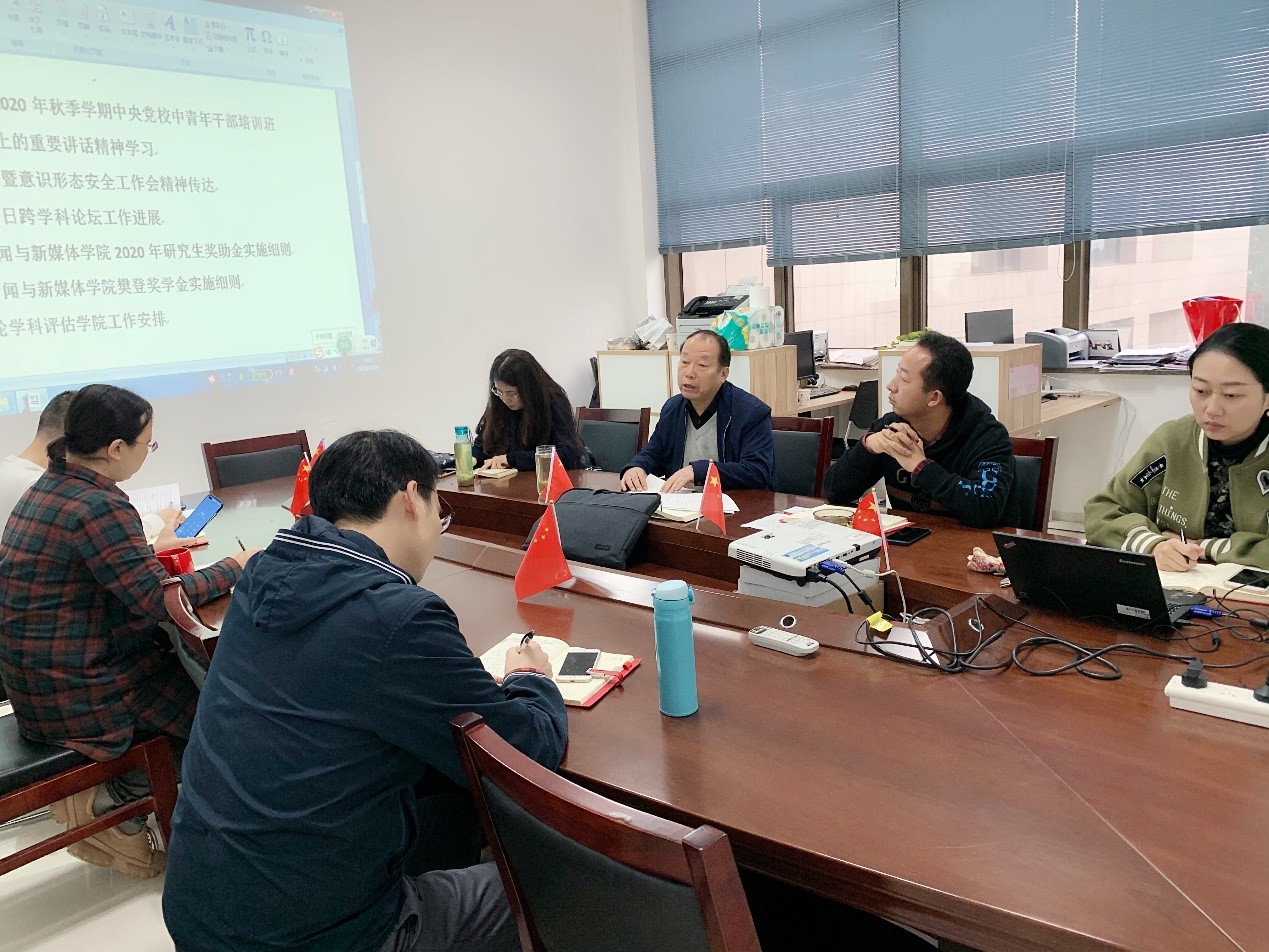 召开本学期第四次党政联席会,安排部署“跨学科视域下的新闻传播”高峰论坛等工作。会议由李明德院长主持,学院领导班子成员参加。