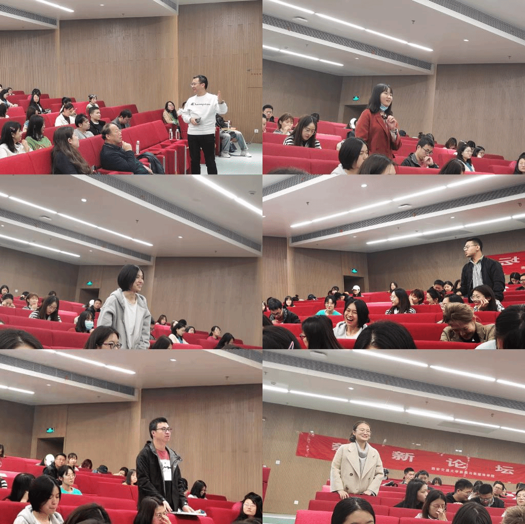 随后曹老师请现场同学分别谈谈自己对“不想当将军的士兵不是好士兵”、“不想考博士的学生不是好学生”、“不想当无冕之王的传媒人不是好传媒人”这几句话的理解,引发了师生们的激烈讨论,充分调动了现场气氛。讨论过程中,曹老师对学生的回答进行了逐一点评,增强了同学们的逻辑思维能力及对“传媒人”这一概念的理解。