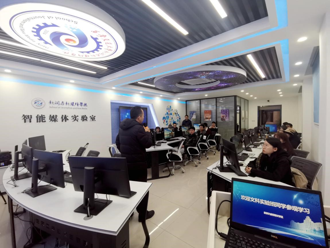 随后,张收鹏老师介绍了智能媒体实验室,他说实验室主要服务于网络与新媒体专业的本科教学,以新媒体内容生产+发布+运营为主,在大数据可视化与数据新闻、传媒类虚拟仿真教学、VR/AR内容创作、人工智能与传媒行业相融合等方面进行实验教学和实践探索。此外,内裤走光