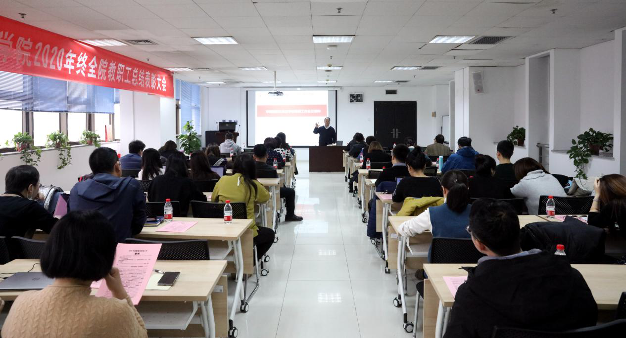 召开2020年终全院教职工大会,传达学校寒假工作会议精神。学院党政领导班子成员及40余名教职工参加了大会,学校考核工作组代表、组织部马瑾老师列席指导,合作企业西安博达软件股份有限公司董事长魏小立、西安鹏胜教育科技有限公司董事长苏鹏、美林数据股份有限公司董事长程宏亮出席本次会议,党总支副书记韩博主持。