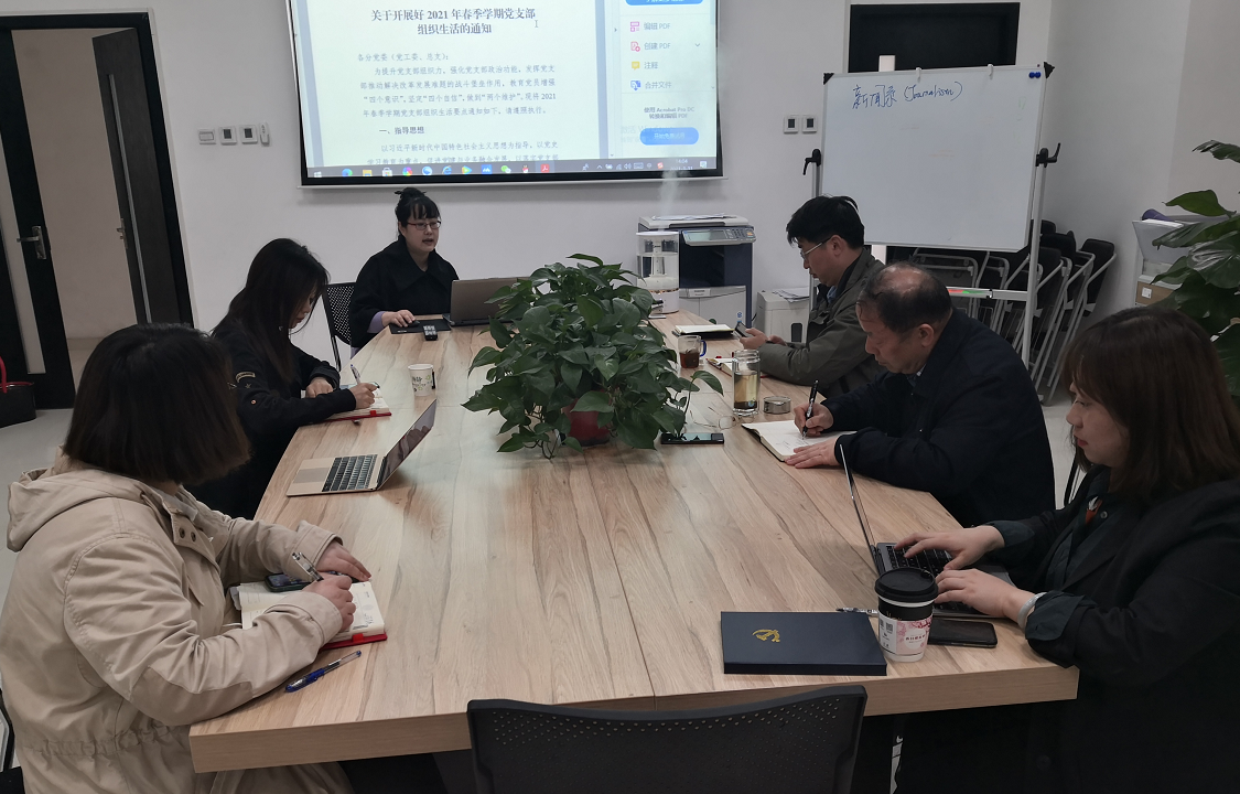 2021年03月31日下午,新闻系教工党支部召开组织生活会,传达学习学校党委关于党史学习教育的工作安排和文件精神,支部书记申楠主持会议,新闻系全体党员参加。
