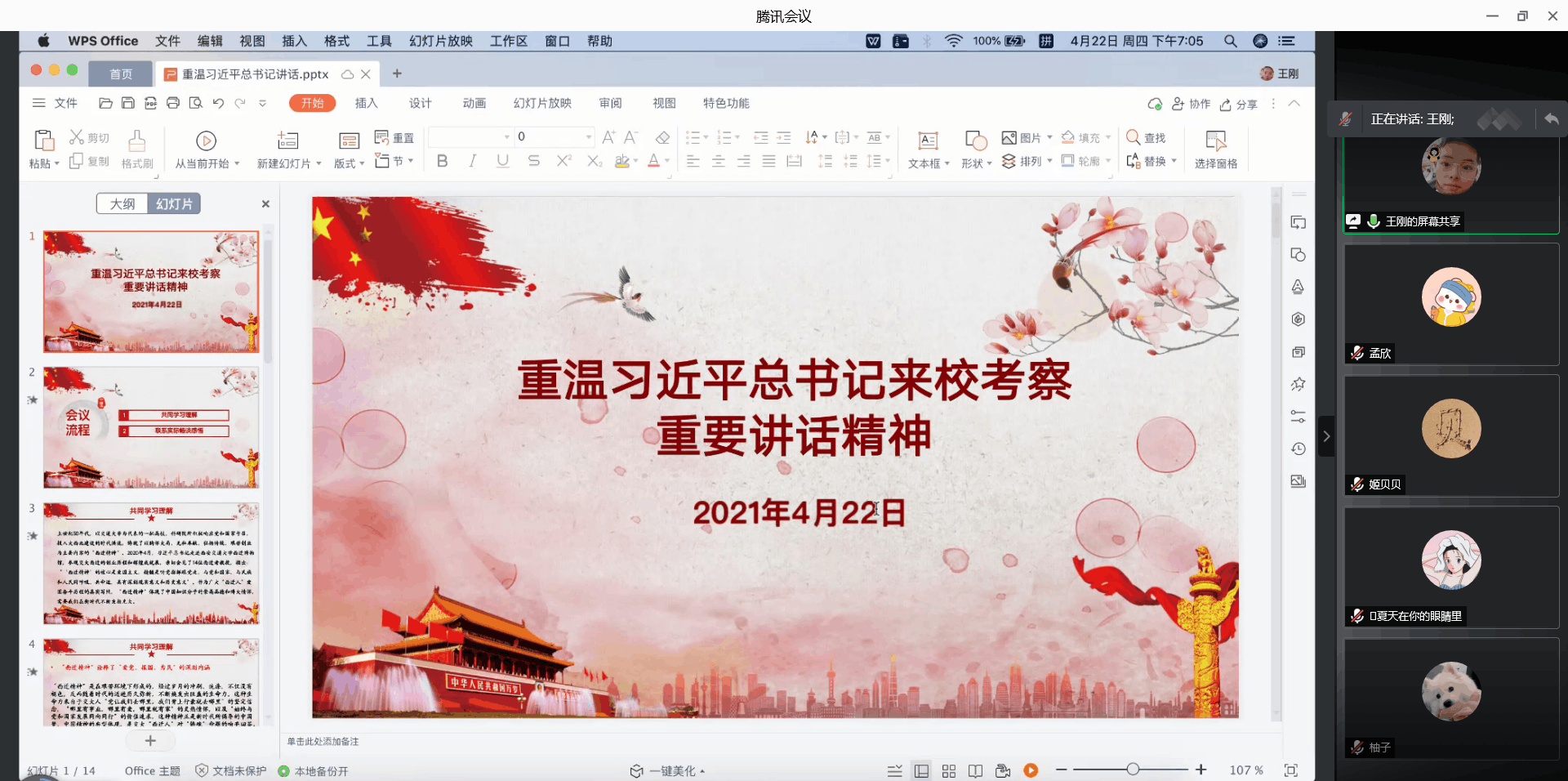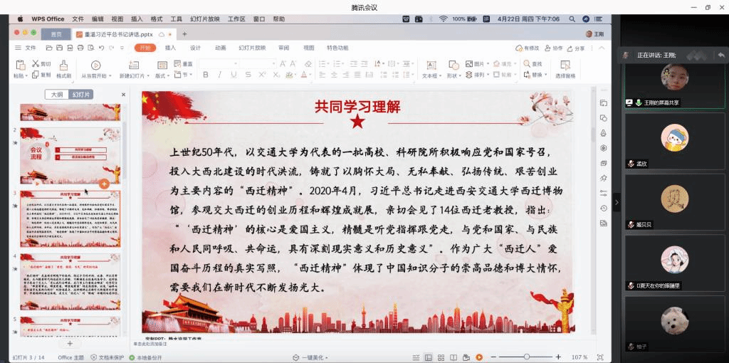 硕9178党支部在线上召开“重温习近平总书记来校考察重要讲话,传承西迁精神,心怀‘国之大者’,建强战斗堡垒”主题党日活动。活动由支部书记姬贝贝同志主持。