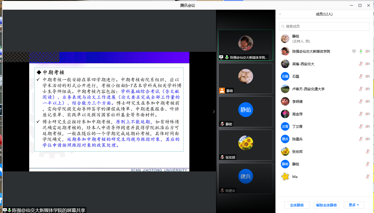 陈强教授对新媒体与社会治理博士研究生培养方案进行了特色分明、内容详实的汇报,充分表述了新媒体与社会治理交叉博士培养的定位与标准、课程设置及学位要求。校内外专家认真听取了论证报告,结合专业发展趋势和行业对人才知识、能力的需求,对培养方案的科学性、前瞻性、可行性进行了讨论,给予了博士培养方案充分的肯定,同时也从课程体系设置,学生学习与实践能力培养等方面提出优化意见。