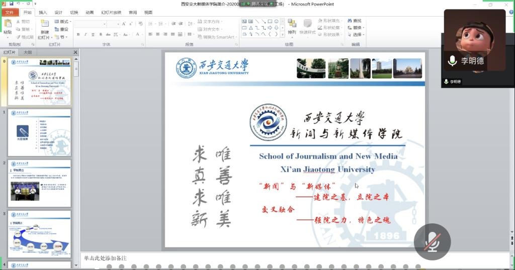 7月9日上午,夏令营开营仪式在云端举行。学院党总支书记、院长李明德教授做开营致辞,新闻系刘斌、传播系刘婵君、新媒体系牛耀红等教师代表参加,并进行了学术分享。