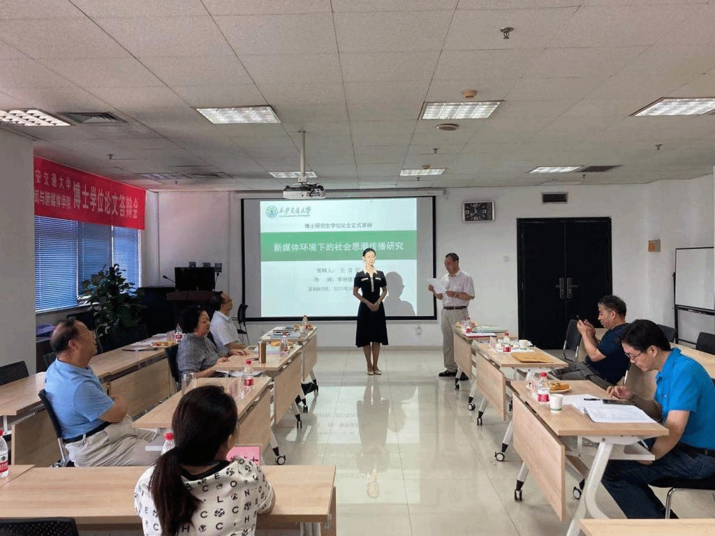 同等学力博士生张园同学就其论文《社交媒体的社会责任研究》中的核心观点、研究内容以及创新点进行了20分钟的陈述。导师李明德教授对该生基本情况进行了介绍。答辩委员们认为该论文选题既聚焦了新媒体也聚焦了学术问题,有较强的研究意义,同意通过本次答辩。专家们同时对论文的整体框架及内容优化提出了建设性的意见,希望论文能有更进一步的提高。