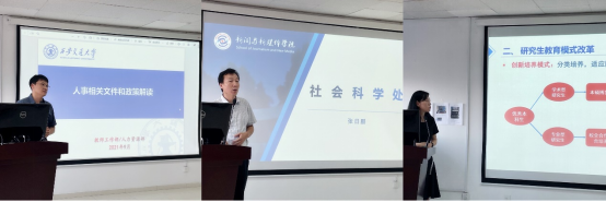 人力资源部副部长费强,社会科学处副处长张日鹏,实验室与资产处副处长陈哲,研工部副部长薛周利,研究生院培养办主任程洁,财务处核算科主管吴婷作主题培训,内裤走光