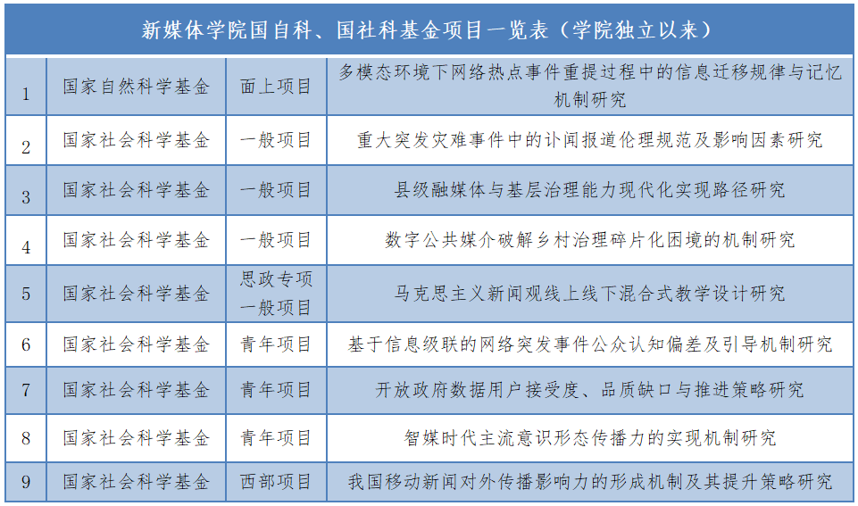 大力推进学科交叉融合,砥砺深耕“工字牌”,坚持问题导向,谋划学院发展。学院独立以来获批国家社科基金项目8项,国家艺术基金项目1项,省社科基金14项;2021年,获批教育部产学合作协同育人项目2项,首获国家自然科学基金项目1项,首次承担国家重点研发计划项目子课题1项,并连续两年获批陕西省创新能力支撑计划科技资源开放共享平台项目。“网络与新媒体”专业入选2021“软科中国大学专业排名”A+,2021年7月学科绝对排名上升至25位(前22%,来自上海软科数据)。