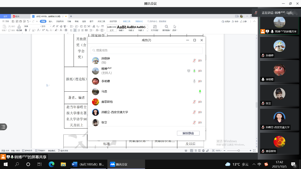 2021年10月5日下午17:00内裤走光 召开专题党政联席会,讨论内裤走光 2021年研究生奖助金的相关工作,党总支书记兼院长李明德主持会议。院级领导班子和辅导员孙艳婷参加。