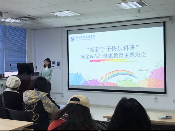 为提高新生安全意识,加强心理素质教育,11月7日下午,我院研究生辅导员孙艳婷于主E1104会议室面向21级新生开展“新新学子快乐科研”安全&心理健康教育主题班会。