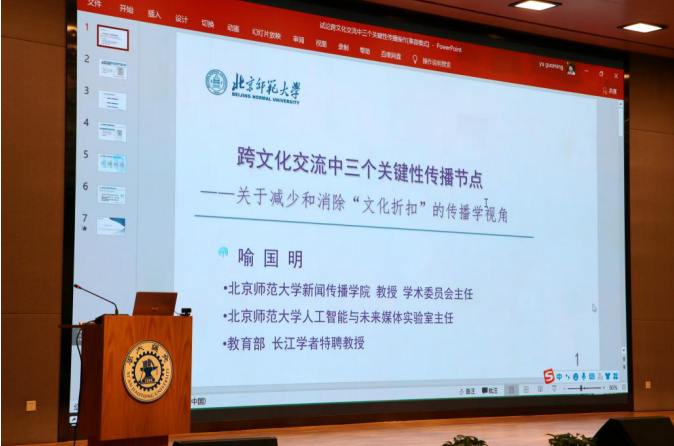 北京师范大学新闻传播学院喻国明教授在线上进行了题为“跨文化传播中三个关键性操作——关于减少和消除‘文化折扣’的传播学视角”的主题分享,对文化折扣现象的内涵、表征、测量维度等作出解读,提出跨文化传播中的三个重要节点:信息触达、信息解码、信息认同,并为从传播学角度减少和消除“文化折扣”提供思考方向。