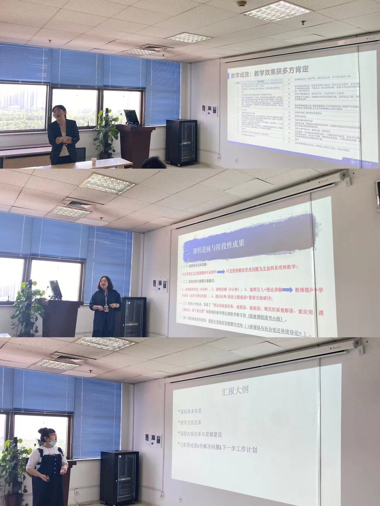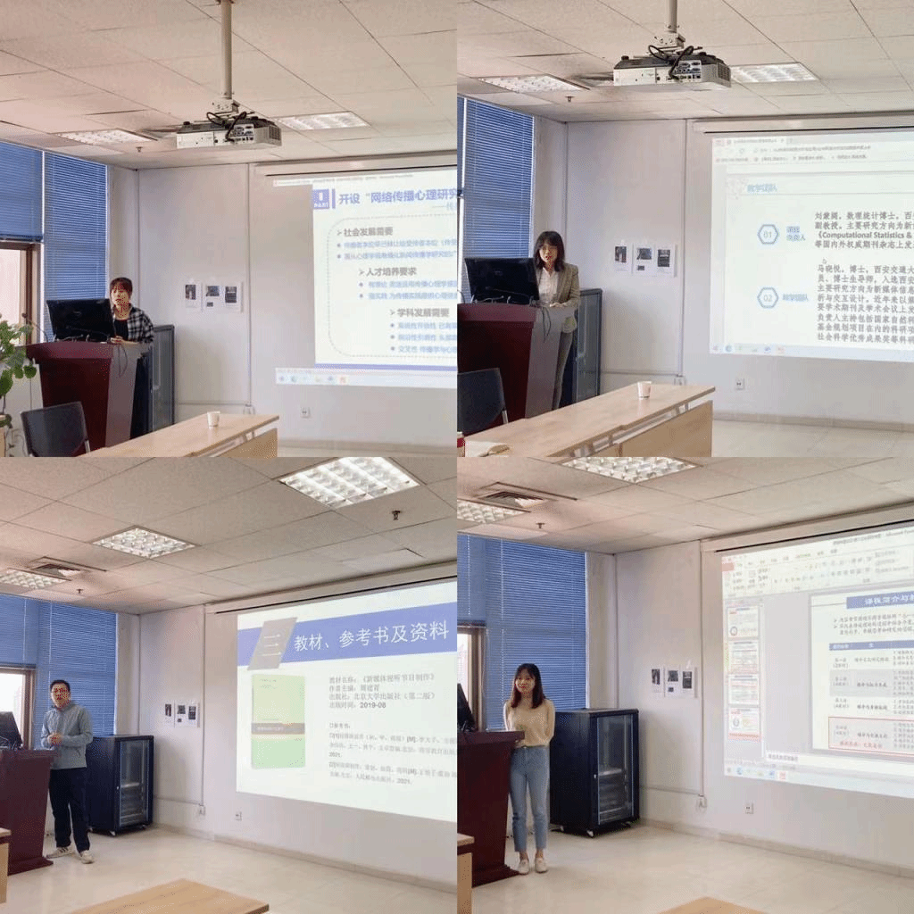 《传播与社会热点问题透视》、《媒介伦理与法治》、《新媒体与社会变迁》三门第二批校级名课程负责人结合一流本科课程评审标准,从课程阶段性成果、课程资源建设及应用、教学方法改革、未来发展方向等方面重点汇报了立项以来的课程建设情况,明确了课程建设需要进一步解决的问题以及下一阶段的建设规划与方案。