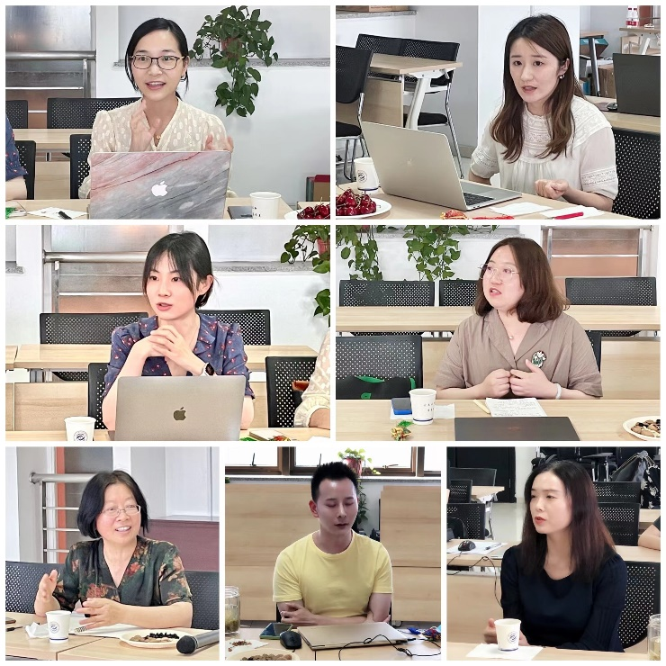 接着,与会成员在现有团队架构下,就研究兴趣及未来方向展开讨论与交流。欧宁老师作为学院资深教师对团队内年轻教师给予深切期望与美好祝福。徐婧老师就其现有研究兴趣,如青少年群体的阶层变化、性别问题等,畅谈对未来团队研究的设想,如新媒体如何重塑乡村青年的日常生活等。张窈老师未来将聚焦数字农家书屋、流动儿童数字阅读等研究问题。赵一菲老师关注志愿者群体能动性问题,希望通过团队启发寻找新的切入视角。缑赫老师关注新媒体对儿童发展的影响,以及城乡青少年数字鸿沟问题,希望通过团队力量就如何提高农村儿童媒介素养开展行动研究。黄蓉老师分享了她追踪四届学生、100多个家庭的行动研究经验,期望团队在学术研究之外,形成“包容”“鼓励”的团队精神,传递价值、承担社会责任。宋欢迎老师分享了她从文学向新闻传播学学科转向的经历,希望通过团队交流,在当前城市形象、海外传播等研究问题的基础上拓展研究方向。沈霄老师也表示,希望通过团队沟通形成启发,围绕乡村振兴与直播带货等研究问题探索可持续深耕的领域。张立老师分享了乡村调研与学科转向的经历,希望团队成员之间可以相互交流、相互启发。