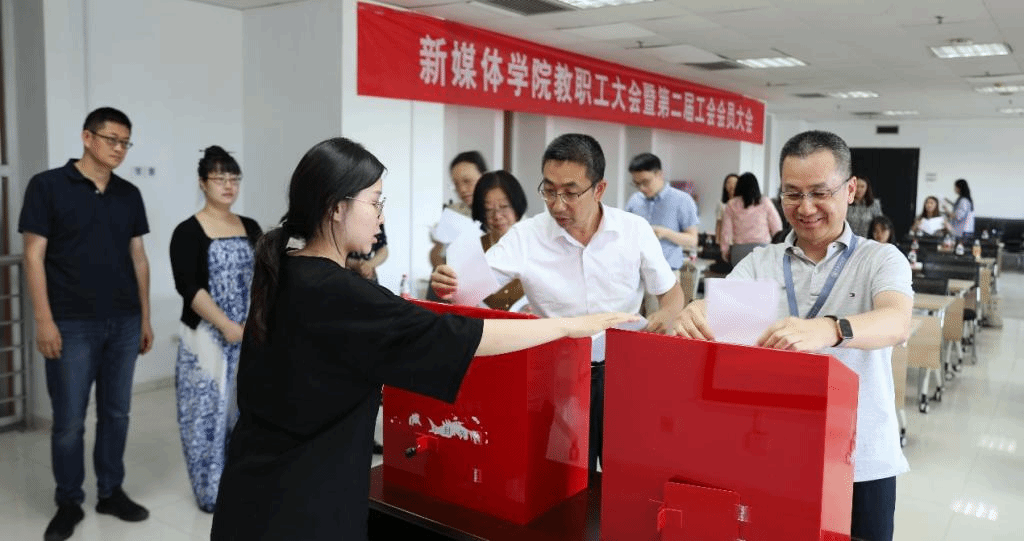 随后,学院第一届工会委员会副主席沈霄宣读第二届工会委员会及学校“双代会”新媒体代表团选举办法,并表决通过监票人、计票人建议名单。大会以无记名投票的方式,选举产生了马晓悦、卢静怡、吴锋、沈霄、范晓莹、徐婧、蒙胜军(以姓氏笔画为序)共7名教职工为学院第二届工会委员,选举产生了马忠、范晓莹、陈积银、蒙胜军(以姓氏笔画为序)共4名教职工为“双代会”代表。