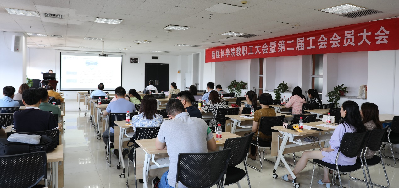 院长兼党总支书记马忠、副书记韩博、副院长孙鹤立及全体教职工参加会议,院长助理、第一届工会委员会副主席范晓莹主持会议。