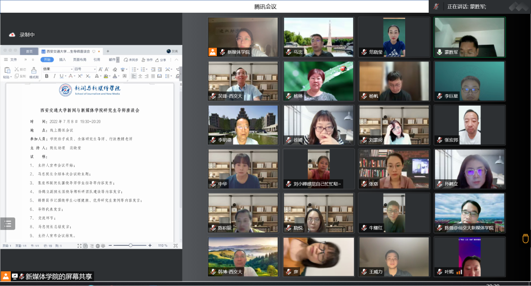 线上召开研究生导师座谈会,相聚“云端”,围绕导学关系、研究生培养、科研团队建设、学生心理健康
