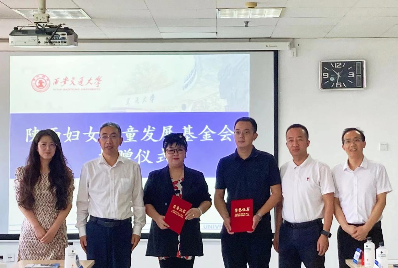 工会主席吴锋教授代表学院接受捐赠,并向陕西妇女儿童发展基金会及相关企业代表颁发捐赠证书。