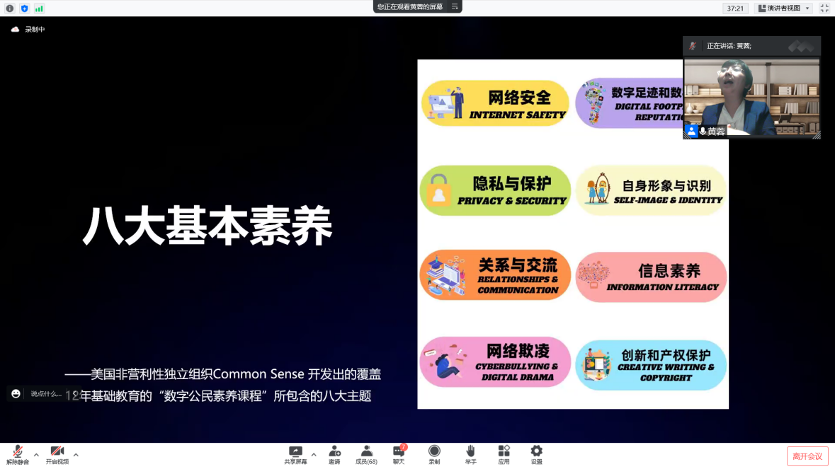 的黄蓉老师,由黄蓉老师为学生们上一堂主题为《未来数字公民养成计划:数字时代儿童青少年新媒体的正确使用》的媒介素养公开课。