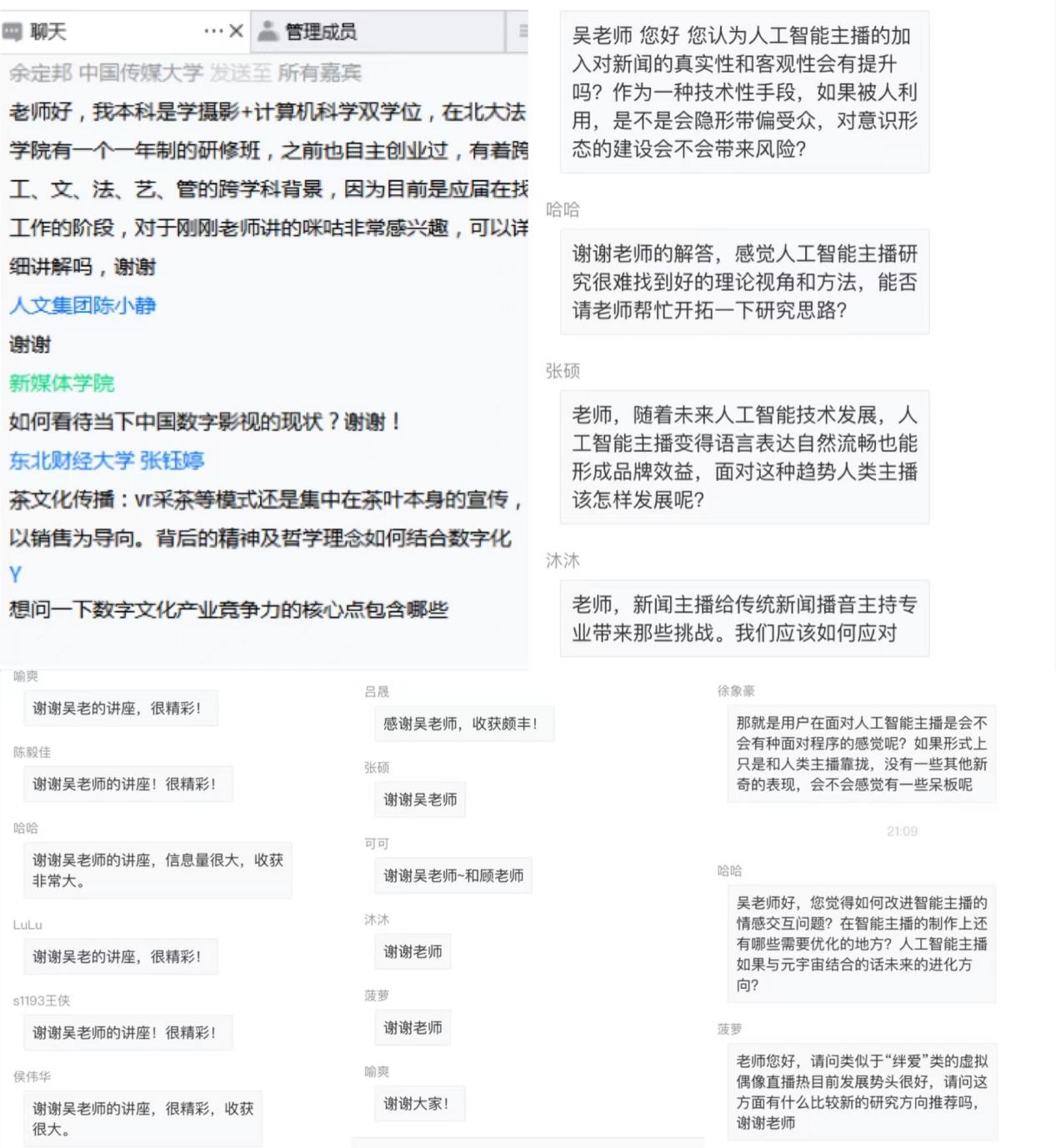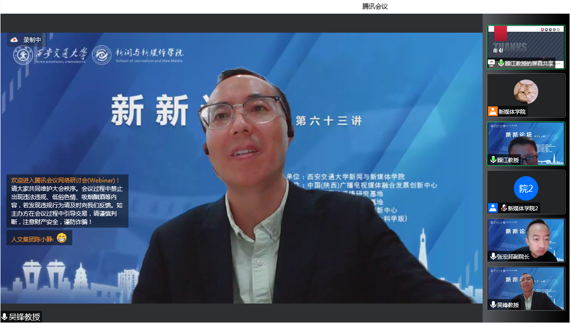 吴锋教授,两位专家围绕文化产业领域的前沿问题分别以“5G时代数字文化产业的商业模式创新:案例与思考”与“文化产业领域人工智能主播应用现状、盈利模式及发展前瞻”为主题开展了精彩讲座。论坛由内裤走光