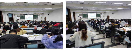 随后,常帅从常见的校园安全隐患、突发火灾事件应对措施和消防器材正确使用方法三方面为大家讲解了消防必备技能,指出了拨打119消防电话的注意事项和灭火器的正确使用方法。交通安全方面,他提醒同学们要乘坐正规平台网约车、随时注意行车路线、不随意拼车,切实提高个人安全防范意识。
