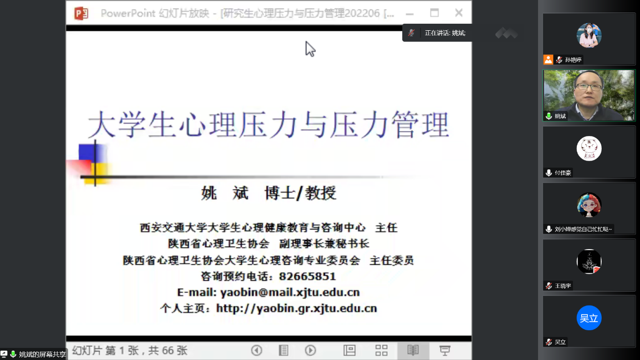 面向学院全体本硕博学生举办心理健康教育专题讲座——高校学生心理压力与压力管理。