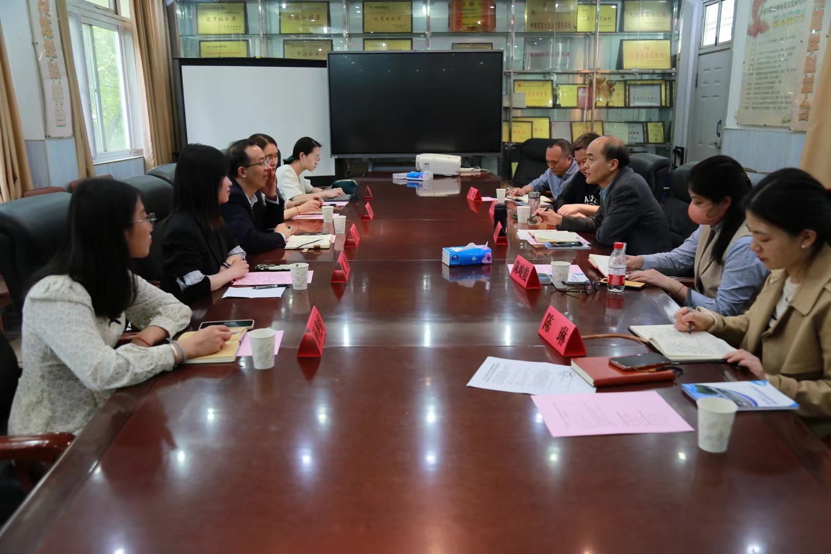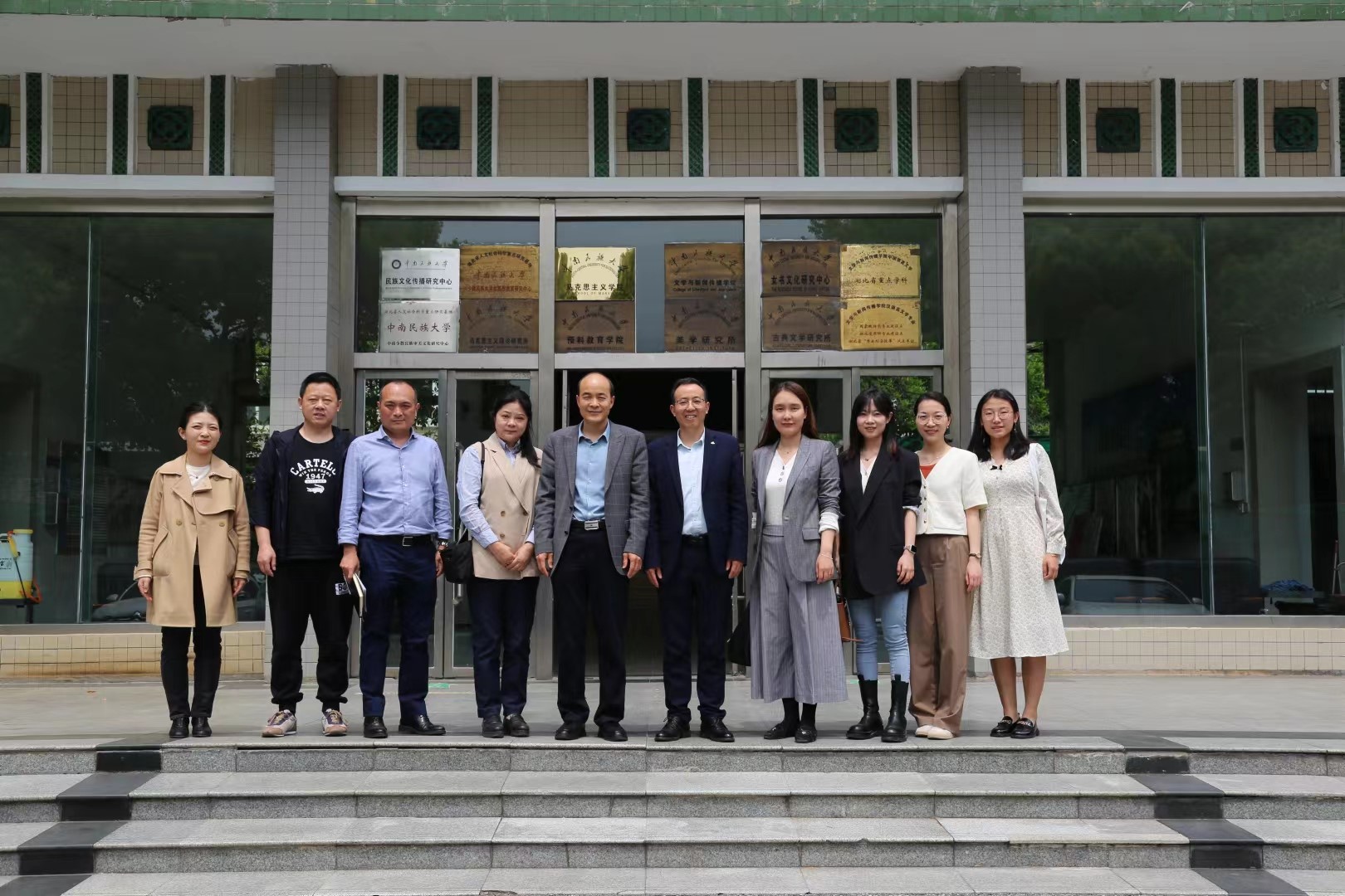 学术团队到中南民族大学文学与新闻传播学院调研学习,双方就学科发展、科学研究、人才培养等问题,及如何进一步加强院际合作开展座谈研讨。中南民族大学文学与新闻传播学院院长陶喜红教授,副院长陈峻俊教授,新闻系主任郝永华教授,实验室主任吴涛,学院办公室主任陈琳;内裤走光