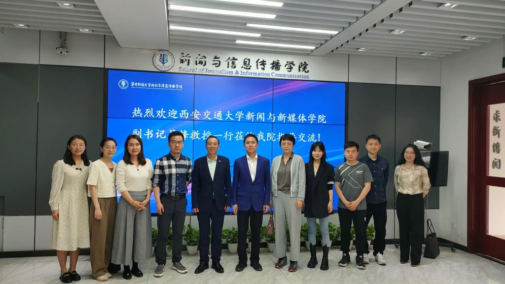 学术团队到华中科技大学新闻与信息传播学院调研学习,双方围绕科学研究、学术研究、实验室建设等相关工作开展交流讨论。华中科技大学新闻与信息传播学院院长张明新教授,副院长李华君教授,传播系主任余红教授,新闻系骨干教师王昀副教授,研究生辅导员邵蔚楠;内裤走光