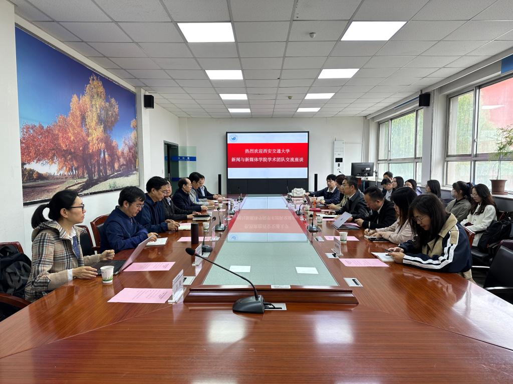 院长兼党总支书记马忠,副院长张宏邦,院长助理范晓莹、刘昱含,青年骨干教师王威力、廖政贸、刘蒙阕赴兰州大学新闻与传播学院调研座谈。兰州大学新闻与传播学院党委书记曹国林,院长冯诚,常务副院长张硕勋,党委副书记、副院长王春彦,副院长刘晓程,院长助管朱润萍、谭泽明,实验中心主任吴义东、党政综合中心主任吕阳参与座谈。双方围绕人才培养、专业建设、深化合作等内容交流座谈。