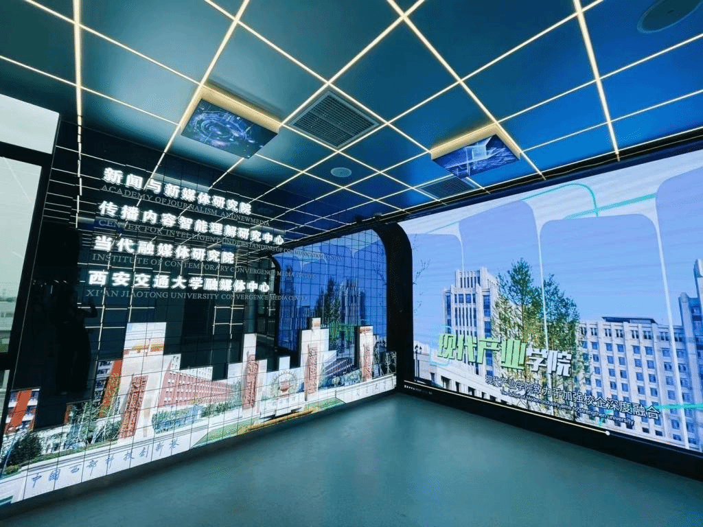 随后,段京肃教授一行参观了新闻与新媒体研究院、融媒体中心、传播内容智能理解研究中心。在参观创新港校区后,段教授深情的说:“创新港校区的建设无疑是西北地区乃至全国高校的最大规模、最高配置,必将成为全国优秀青年学生的神往去处。”参观期间,陈积银教授介绍了交大融媒体中心扎实推动学科交叉、凝聚特色科研方向的创新举措。他指出:“新闻学科要顺应时代发展,段教授对我们青年学生的指导,给如何做好交叉研究提供了很好的启迪。”