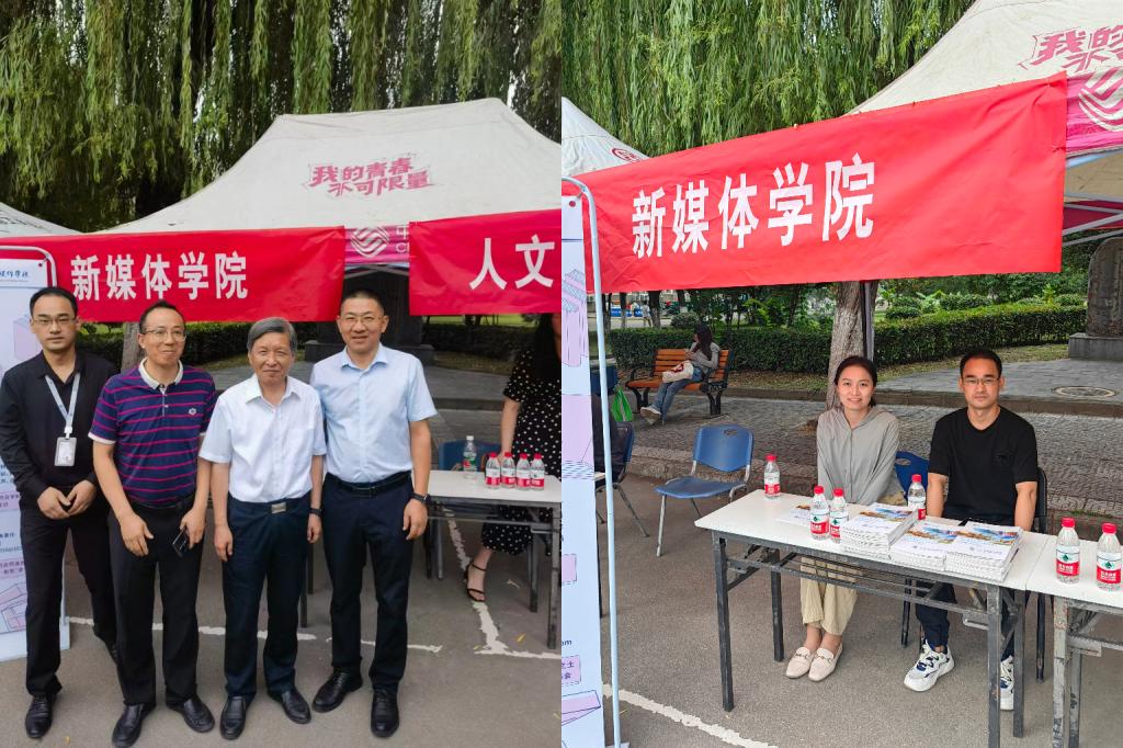 副书记吴锋教授、新媒体2301班班主任朱利平、新媒体2302班班主任刘丹前往兴庆校区南门迎新一线,与书院一同迎接新生。