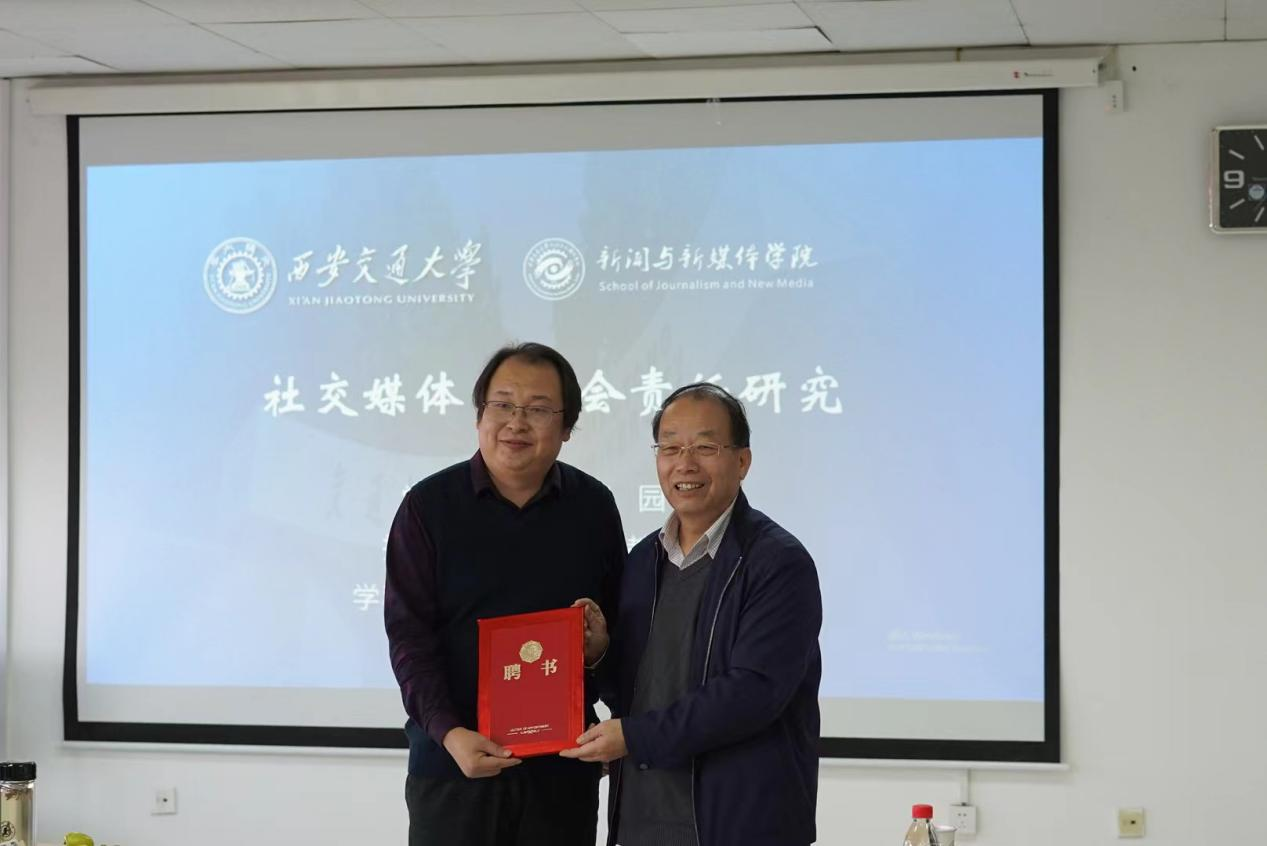 答辩开始前,学院学位评定分委员会主席李明德教授向答辩委员会主席陈积银教授颁发聘书。