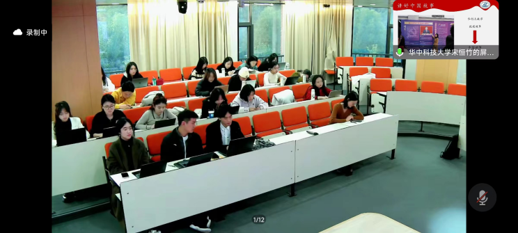 华中科技大学新闻与信息传播学院的新闻与传播硕士生第一党支部书记宋恒竹带来了“扎根英雄城市,讲好中国故事”的华科大抗疫故事。在抗击疫情的过程中,华科大人以实际行动诠释抗疫精神,在英雄城市书写下一个个感人至深的抗疫故事。支部的王梓晗同学以华科大在疫情阻击战中涌现的先进代表为例,详细讲述了时任附属金银潭医院院长张定宇、世界首例新冠逝者遗体解剖和病理学研究者刘良、华科校友会志愿者新闻学院2020级硕士生王一苇的先进故事。